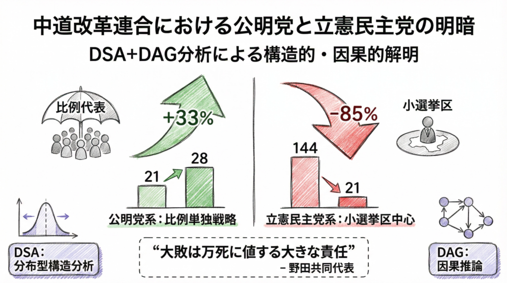 さらにDAGは、媒介(メディエーター)を置けます。制度→不安→裏切り、のように、意思決定の途中にある心理や認知を変数として扱える。ビジネス現場で重要なのは、「裏切るな」と説教することではなく、「不安が裏切りを合理化する構造」を断つことです。たとえば監査の設計、反復取引の仕組み、情報の透明性、フェアな評価指標――こうした介入可能なノードが見えてきます。
