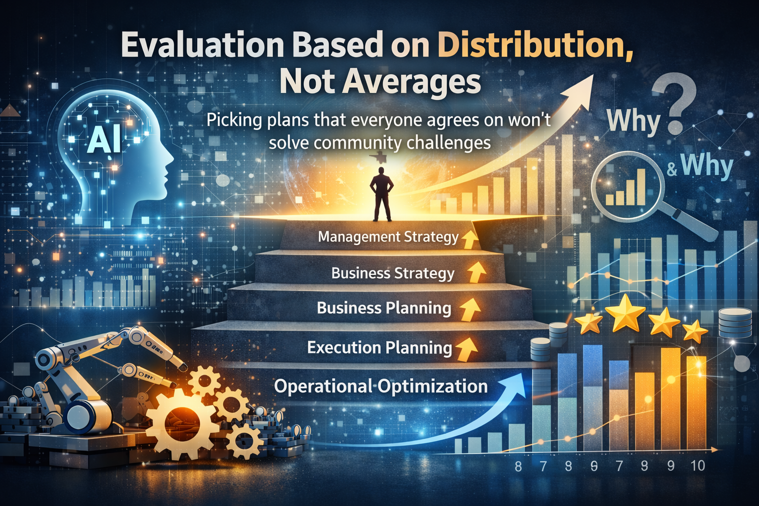 もちろん、平均が低ければ何でも良いという話ではありません。説明不足や実装不能な提案も混ざります。重要なのは「平均」ではなく「分布」を見ることです。評価が割れること自体を危険視するのではなく、むしろ新規性の兆候として捉え、次に実装条件(制度・予算・体制・KPI)でふるいにかける。一次で尖りを拾い、二次で実装可能性を見極める──この二段階の考え方が、イノベーションを殺さずに現実へ接続するための現実解だと思います。