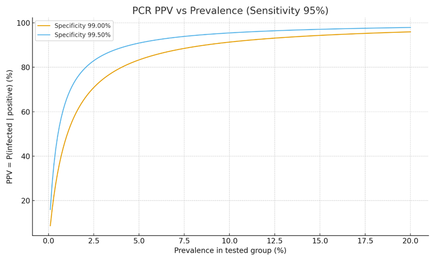 - 99.5%:PPV ≈ 90%