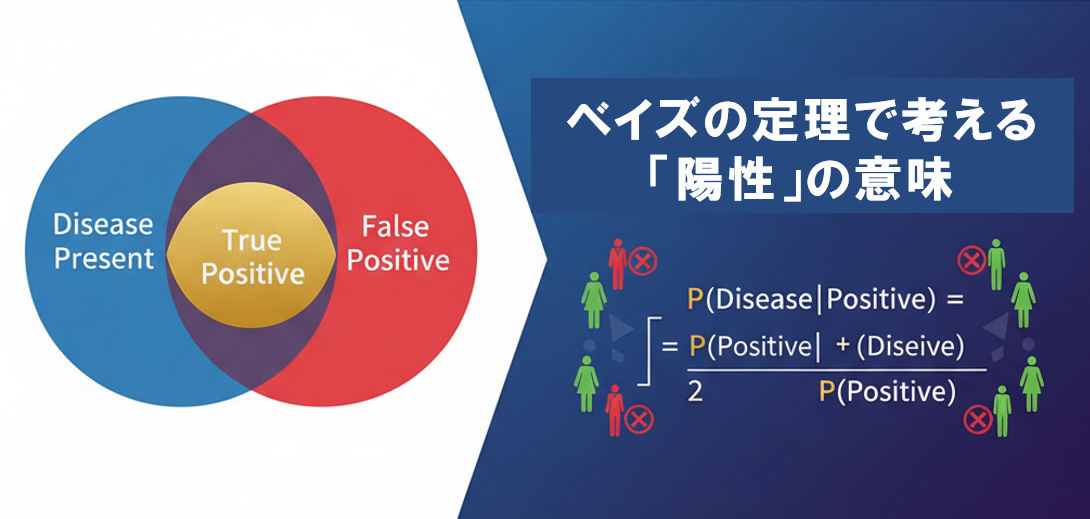 ベイズの定理とは、「ある検査結果が得られたときに、その人が本当に病気である確率」=事後確率を求めるためのものです。