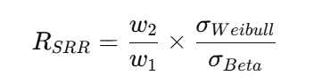 w₂/w₁ ≈ 0.3、σ_{Weibull}/σ_{Beta} ≈ 2.0 → R_{SRR} ≈ 0.6(共鳴なし)