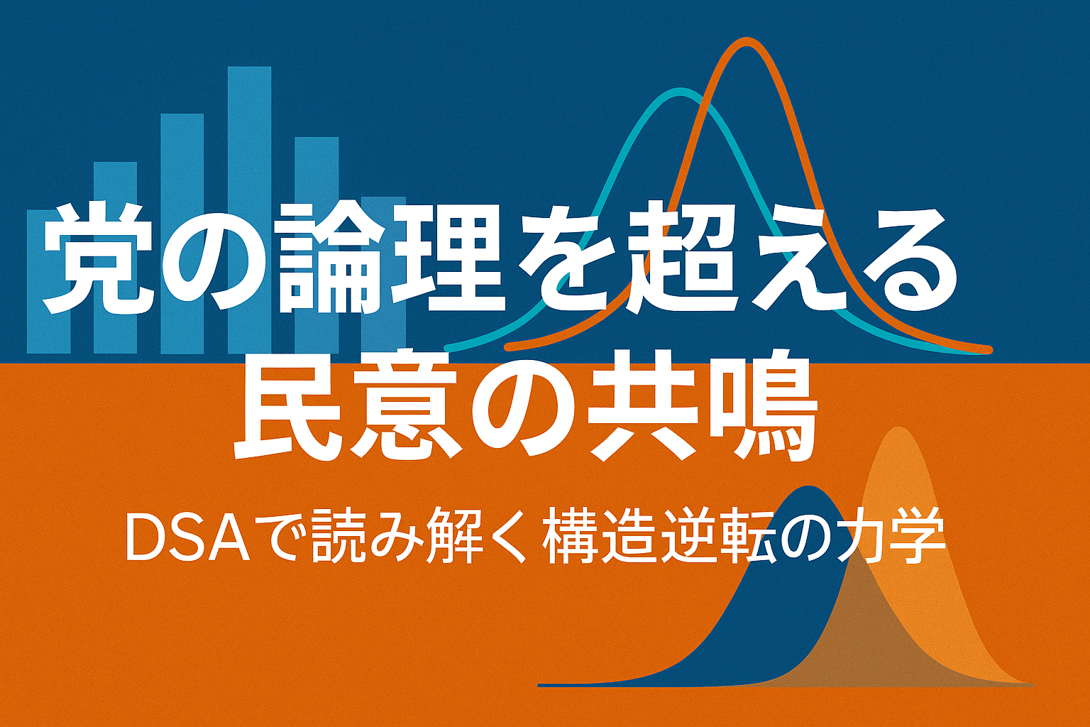 分布構造分析(DSA)で両者の票動を数理的に解析すると、制度的安定構造(ベータ分布)を、一時的に非安定構造(ワイブル分布)が共鳴的に上書きする様子が見えてきました。