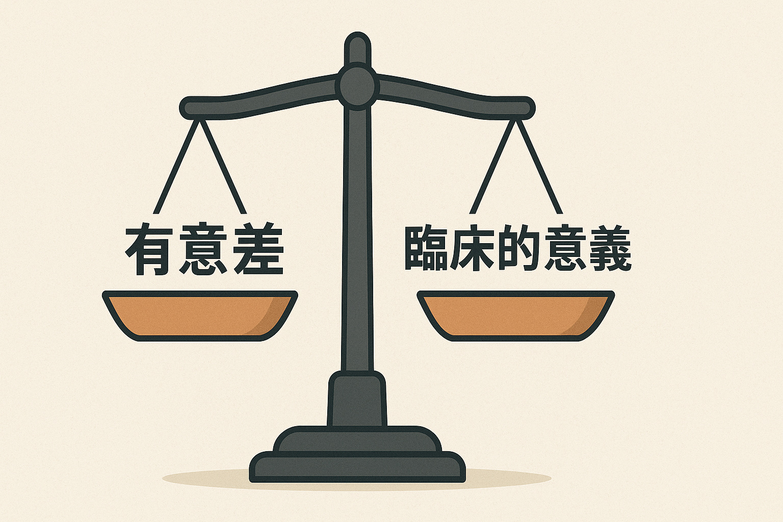 注意すべきは、有意差はあくまで「偶然ではない差」を意味するだけであり、その差が大きいか、あるいは臨床的に本当に意味があるかを保証するものではないという点です。例えば1万人規模の試験でわずかな差が統計的に有意となっても、患者一人ひとりの体感としては「ほとんど変わらない」可能性もあるのです。