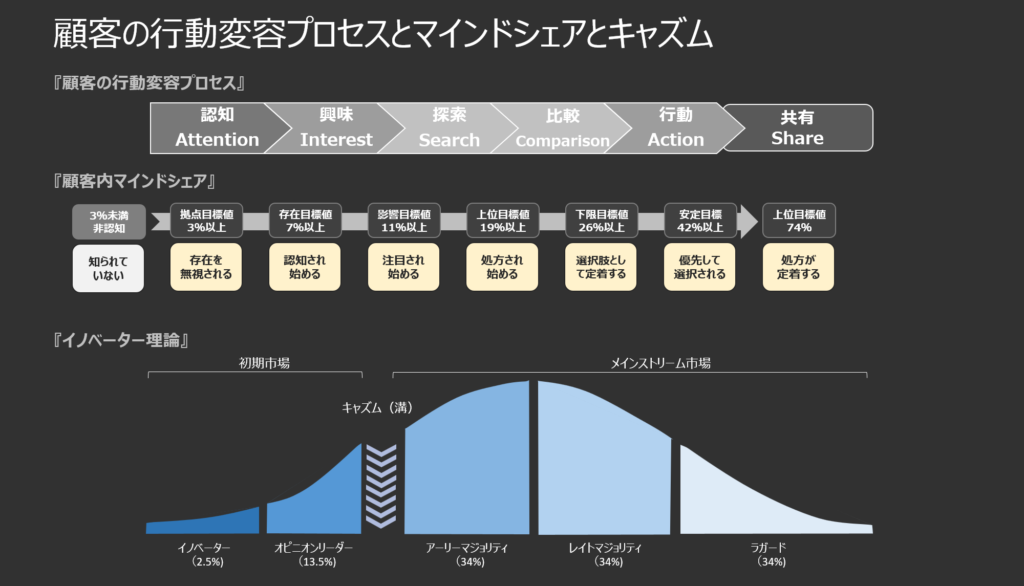We show the customer mindshare value as a way to quantify the customer behavior change phase.